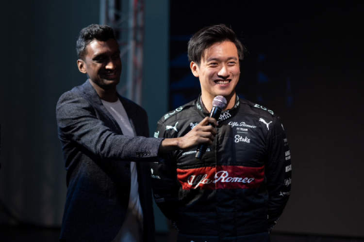 中国车手周冠宇和老将博塔斯出现在了发布会现场,一起为他们今年要驾驶的全新赛车揭幕。