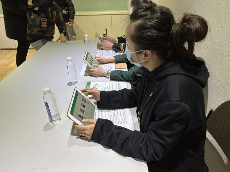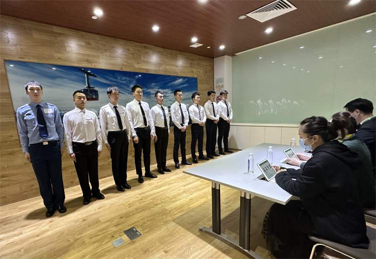 今天的首场招聘涉及了空乘和安全员两个岗位,应聘人员需要接受初步面试,检验体态和岗位相关基本素质。面试官当场在系统打分,考生走出初试考场后即可查看成绩。进入复试名单后即可随即参加更进一步的笔试、面试,检查面试者的英语能力、相关素质等,乘务员岗位将设置情景考题,考验面试者的应变和解决问题能力,安全员还需进行专业的体能检测。