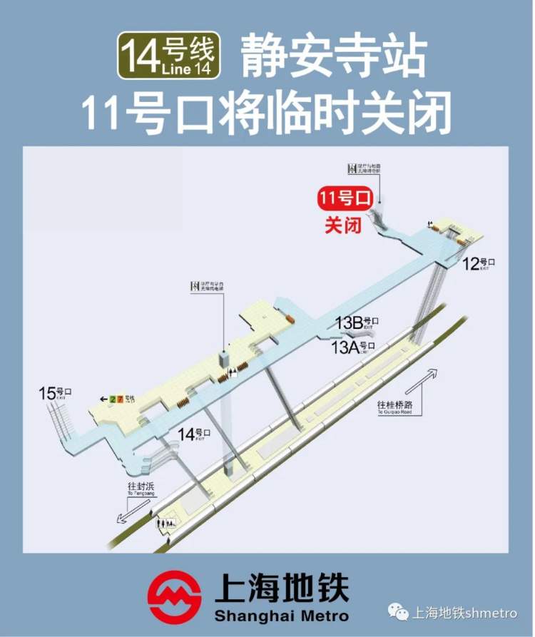 出行小灵通 | 静安寺站11号口将于2月11日起临时关闭 周到君 2023-2-08 来源:周到上海 据“上海地铁shmetro”微信公众号消息,为了配合施工,14号线静安寺站11号出入口将于2月11日运营开始起临时关闭,车站将做好客流引导。 来源:周到上海 作者:周到君 赞一个 (0)