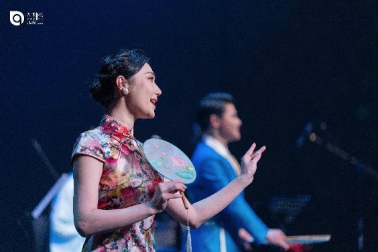 古筝琵琶、二胡长笛、中国大鼓等民族乐器时而化为兵器,演奏《沧海一声笑》《刀剑如梦》等现代热歌,尽显侠骨柔情;时而与大提琴、钢琴融合,演绎《一步之遥》《月圆花好》等创作于上世纪三四十年代的流行金曲,流露出海派摩登与曼妙气韵;木鱼、碰铃等乐器的加入和《相思赋予谁》《禅韵》等古曲演绎更为音乐会增添古朴雅致,还有水袖舞蹈、侠士表演等综合交融以及用专业淮剧戏腔演唱的曲目,彰显戏韵悠扬。