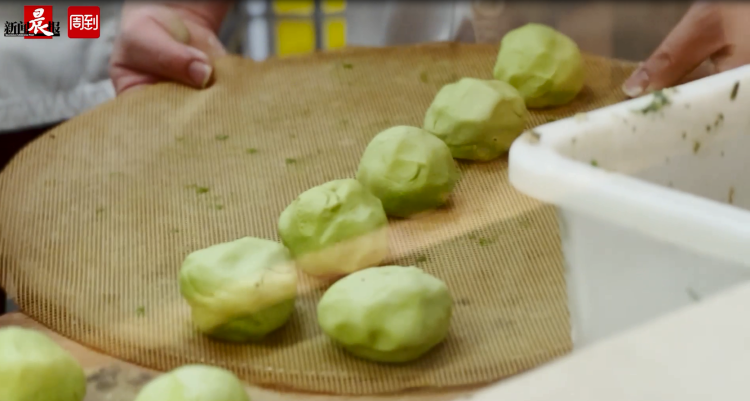 真老大房的青团采用了竹叶青染色,陆岚师傅解释说:“艾草的缺点一是颜色不纯,青团成品会有黄色,顾客会误以为是青团变色了;此外,艾草制成的青团会有一股中药味在里面,所以我们在前两年改为竹叶青,因为竹叶青它不是化学染料,而是纯竹叶提取物。”
