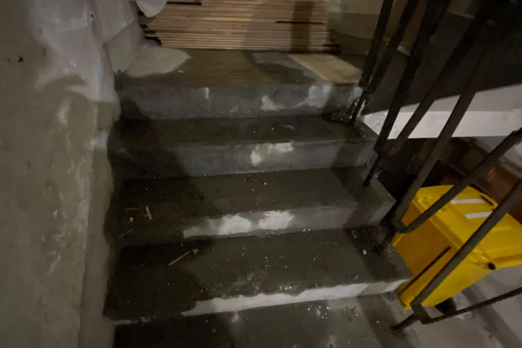 2月13日,新闻晨报·周到上海记者来到郑阿姨家,看到房屋内原本装好的地板已经全部拆除,部分柜子也拆了下来。拆除的地板暂时放在地下室,堆放地板的水泥地面积满了水,小梁表示,这是地板吸满水后渗出来的。
