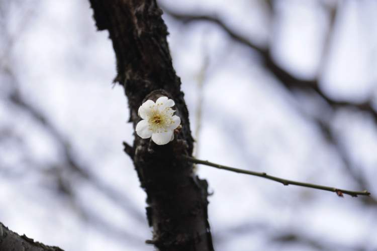 在春寒料峭的早春,梅以自己顽强的生命力,顶着严寒怒放,为园里增添鲜艳的色彩。