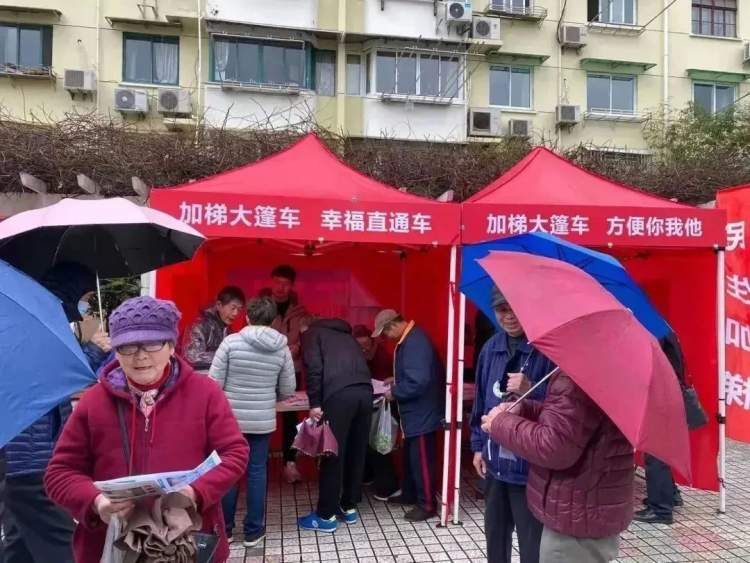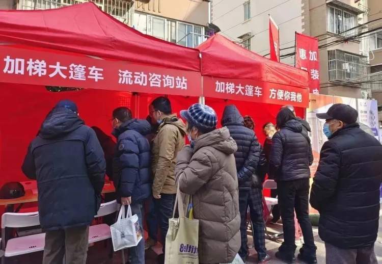 红红的“大篷车”、飘扬的彩旗、悬挂的横幅、醒目的展架、滚动播出的电子显示屏、热情专业的工作人员、专注而迫切的居民、互动问答的小区微信群、不停被点击关注的加梯小程序……线上线下的全方位服务,洋溢着幸福温暖的气氛,在解答居民各种疑问的同时,也让大家更加清晰地了解相关信息,让渴望加梯却略带迷茫的居民得到一次完美“升级”。