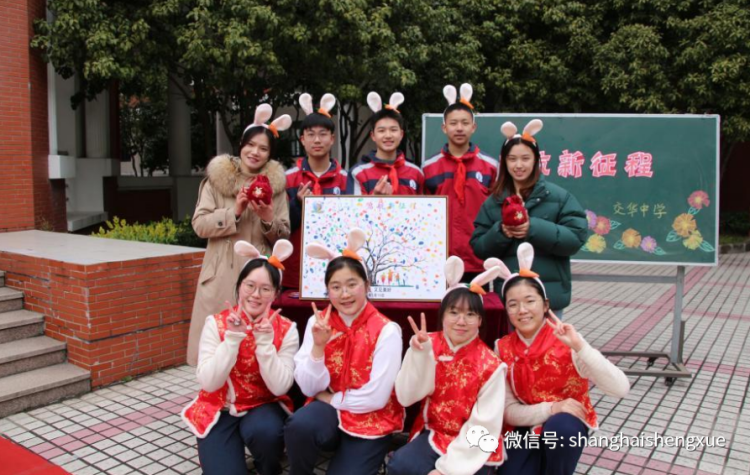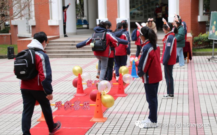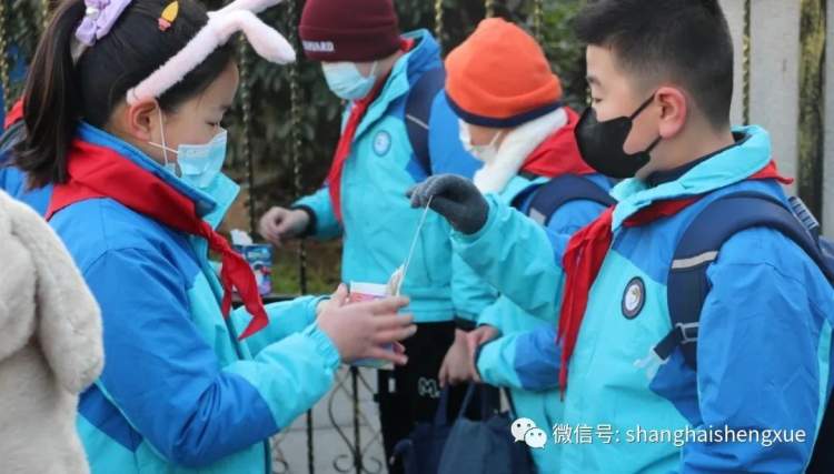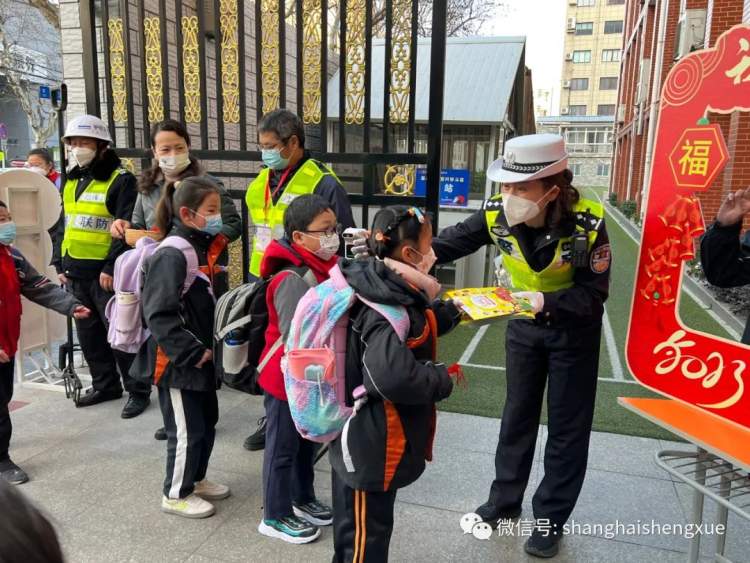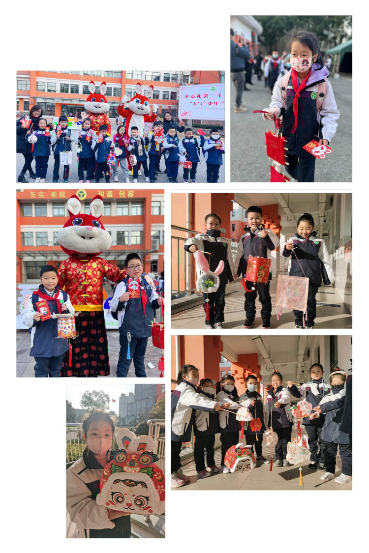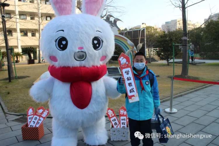 开学首日,上海市浦东新区北蔡镇中心小学校门口欢声笑语。校长余伟珏老师携手2位兔年吉祥物人偶一起欢迎学生重返校园并送上新年红包盲盒。红包盲盒内含新年寄语、校内岗位体验券、导师互动券及小文具等,满载新学期新希望。