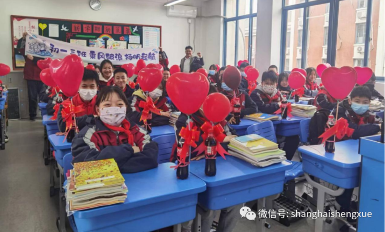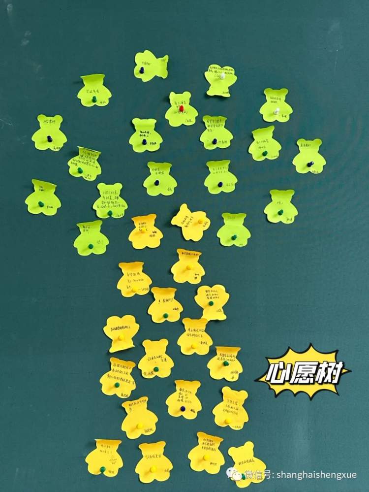 干净工整的课桌椅、喜庆的教室布置、写着祝福语的黑板,每一处都传递着浓浓的爱以及对同学们新学期美好的祝愿和期望。在报到的第一天,各班级从“共”出发,组织了主题鲜明的班会课,积极营造归属感和团队感。大家以班级为单位进行了“创意集体照”拍摄活动,在欢声笑语中创意地留下班级每一个的笑脸。“全家福”里扬起的笑脸预示着同学们定能在新学期乘风破浪,实现理想!每个班在新学期还“植”起一棵“成长树”,同学们在树叶形的纸卡上写下自己对新学期的期许,满怀期待迎接新学期。