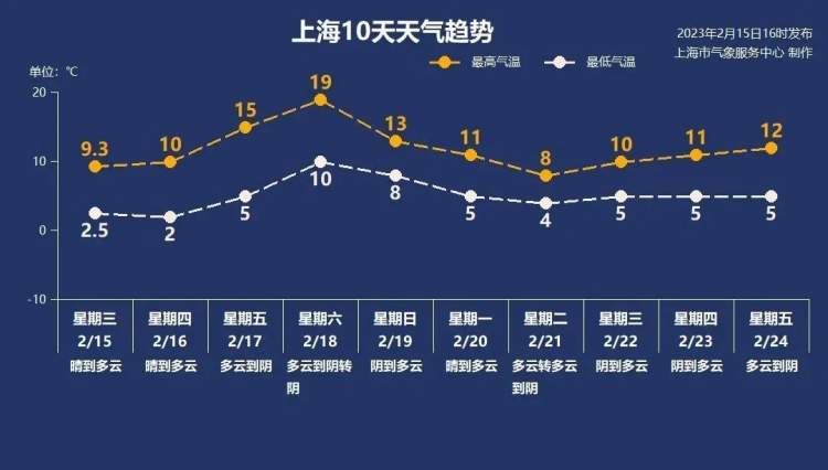 先是抬升:周五全天5-15℃,周六最高可达19℃;最低也进入两位数行列,暖和像春天。