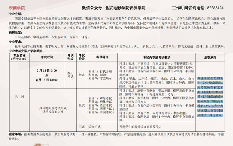 而《北京电影学院2023 年艺术类本科、高职(专科)招生简章》显示,表演类考生的文化课分数只要达到考生所在省艺术类本科录取最低控制分数线后,就可以按专业考试成绩从高分到低分排序,择优录取。