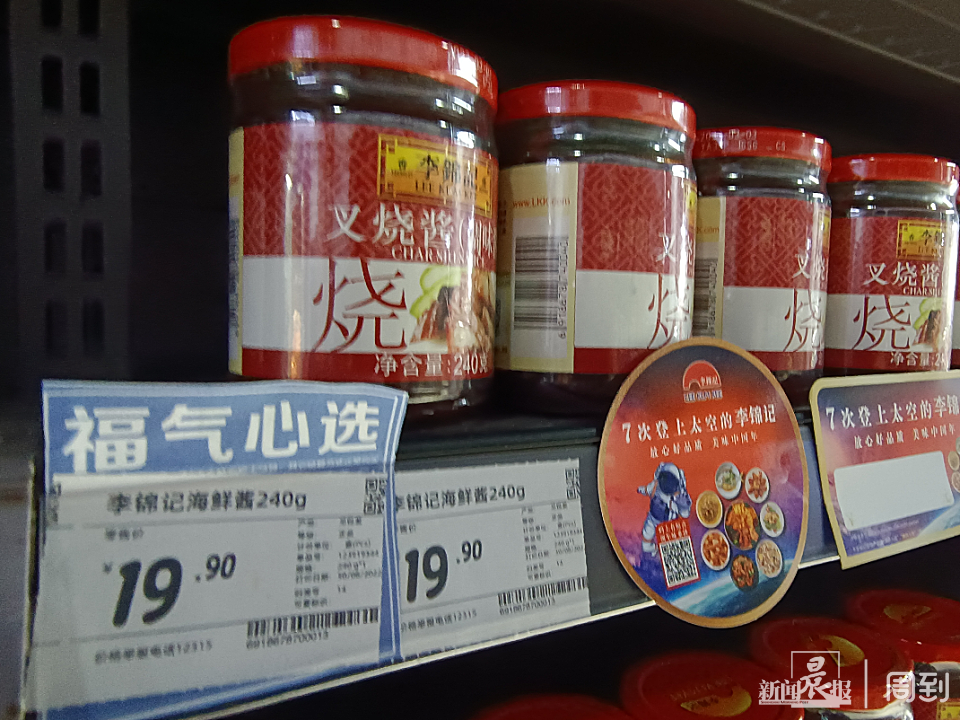 例如调味品区域,我发现李锦记部分调味酱有“福气心选”蓝色标签,需要现金支付,据说前不久这些调味酱是可以用购物卡结算的,我还翻出了之前的价格标签(见下图)。