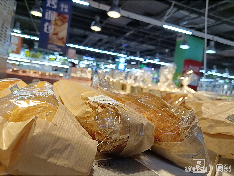 一位老爷叔让我帮忙看看清美生产的无锡油面筋价钿是多少,因为货架上的油面筋都是两包组合销售的,所以单价他搞不清楚。我去询问附近的工作人员之后,才晓得油面筋单买一袋是8.2元。老爷叔听了之后也拿了一袋油面筋,我注意到他手里还拿了一条6.9元的法棍。