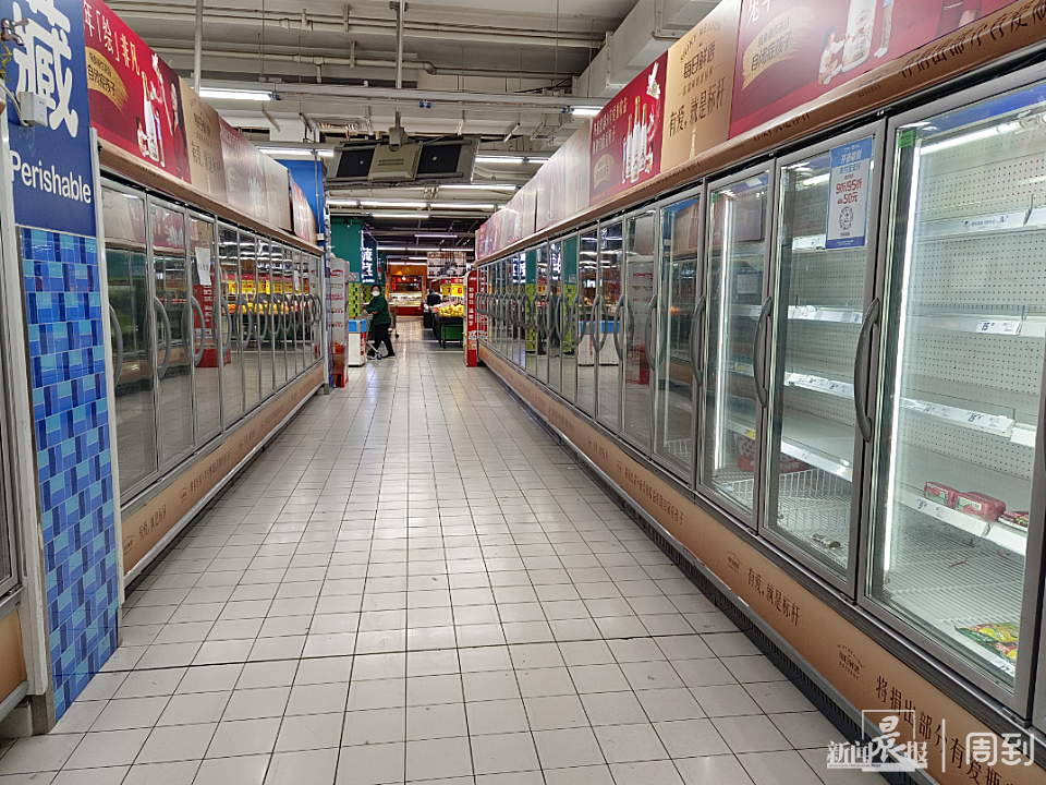 让我有点失落感的是生鲜区域的乳品和肉肠,原来这里的酸奶制品和火腿肠琳琅满目,现在品种和数量都大大“缩水”了,我喜欢的大红肠只有一个品种。一眼望去,发现大多数冰柜和冷藏柜都关掉了。