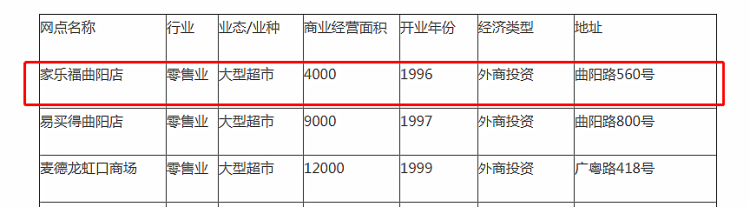 我回忆起上世纪九十年代,家乐福在上海开出了第一家门店——家乐福曲阳店。现在新开一家超市不算什么大新闻,当年这家店的开张可谓是引领了上海商业零售模式的新形式和新思路,同时也是家乐福进入中国零售市场的开始。我在上海市地方志办公室的官网“上海通”上查到查到这样一段资料,印证了曲阳店确实是家乐福的上海首店: