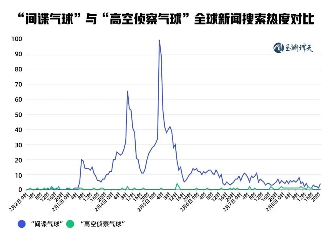 最近一段时间,当美媒报道中的“气象气球”在24小时内,整齐划一地变为“间谍气球”,我们仿佛能看到一条越传越离谱却越炒越火热的传播链。而公众号“玉渊谭天”通过大数据梳理发现,美国炒作“中国间谍气球”发酵的最高峰,恰好是美国媒体报道所谓布林肯计划启程访华的前几个小时。