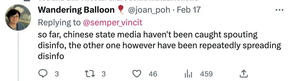 这场美国自导自演的“气球”闹剧很快被戳破,而民众对于西方媒体的信任感,也正是在一次又一次戳破谎言的过程中逐渐流失。