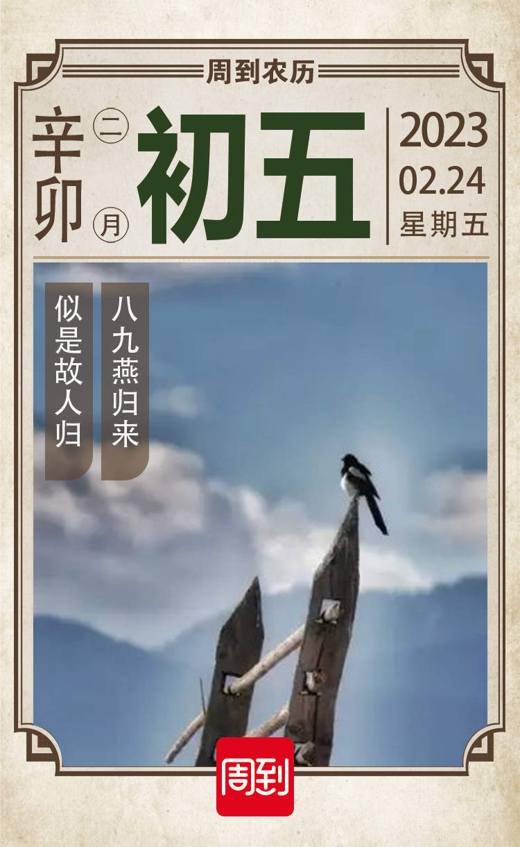 农历中国 | 二月初五 · 八九燕归来 额是狼 2023-2-24 来源:周到上海 旧时民谣唱到: 桃花红,梨花白, 黄莺鸣叫燕归来。 讲的就是雨水时节与惊蛰前, 春回大地, 南下过冬的燕子, 迎春如约归来, 衔枝筑窝。 这时,农村的老人都知道, 会阻止家中的熊孩子爬树上房顶, 就是怕惊扰了刚刚归来的燕子。 来源:周到上海 作者:额是狼 赞一个 (0)