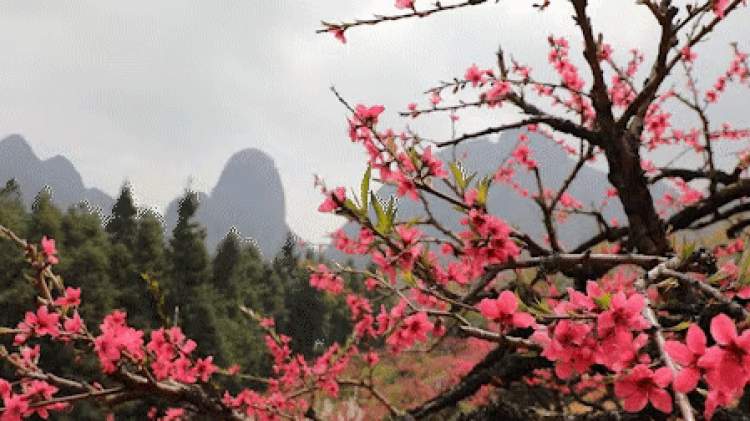 每到春天,盛开的桃花颜色就如淡淡的胭脂。