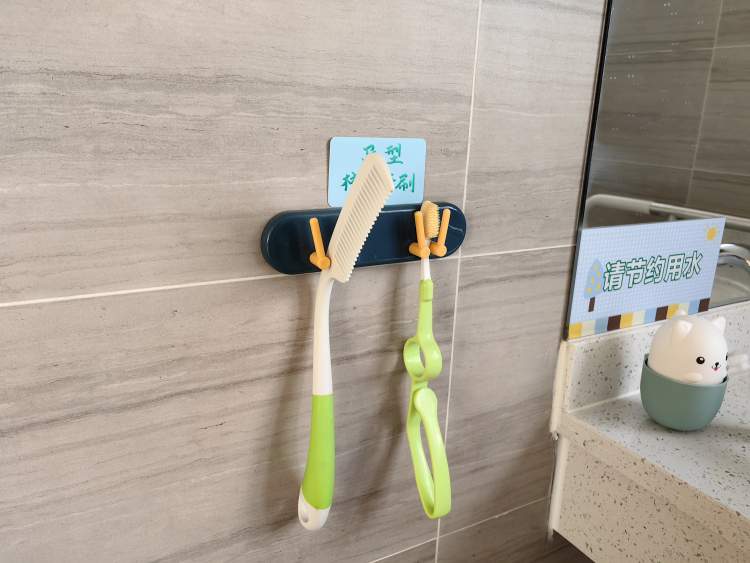 而适老化的梳子、牙刷是大长柄,方便抓握。