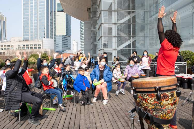 上海大剧院三楼的“隐藏空间”观景露台再度对观众开放,举办“小小演奏家·创‘艺’亲子音乐互动”活动,伴随着艺术家和跳动的音符,大朋友和小朋友一起蹦蹦跳跳地走进激情澎湃打击乐的世界,释放身体与心灵的无限能量;