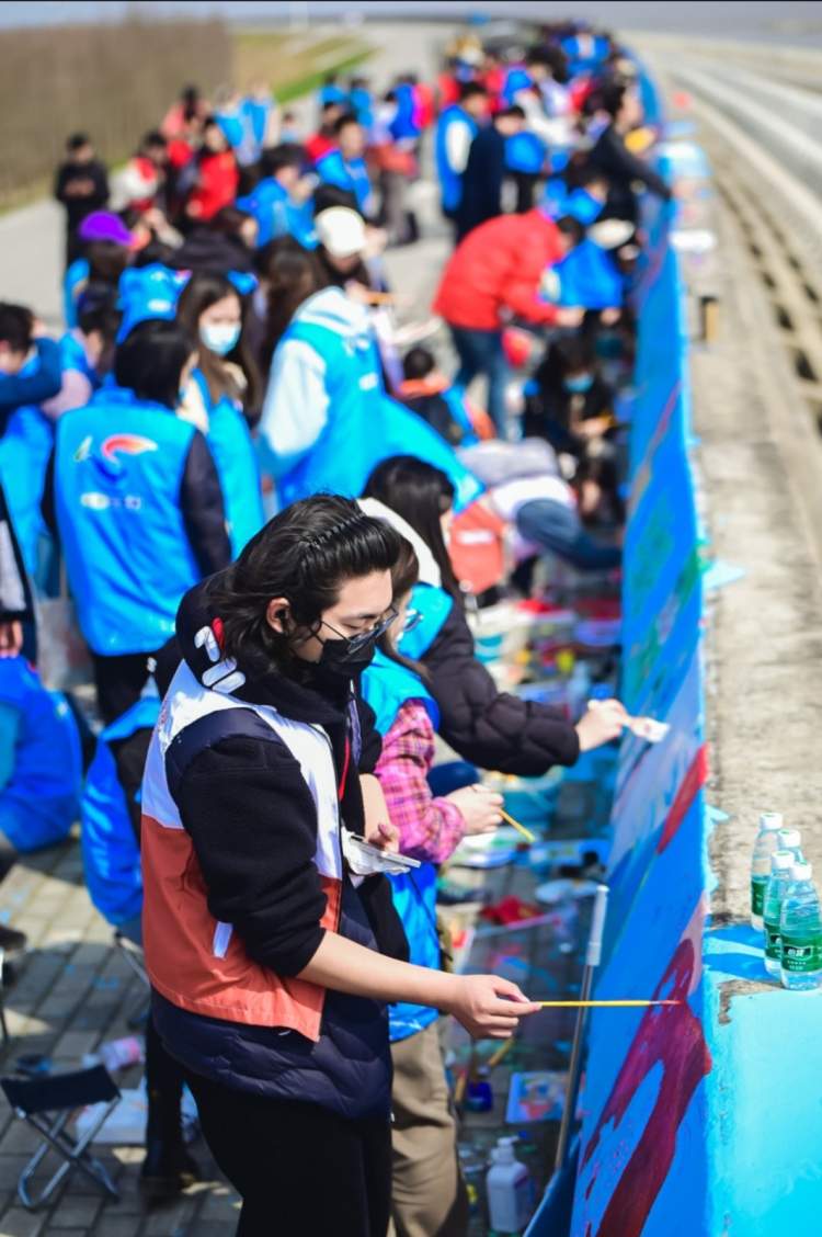 本次活动主要以南汇嘴观海公园小桉路以北100米进行海堤绘画和海滩垃圾清理,本次绘制完成后,墙绘总长将近600米。