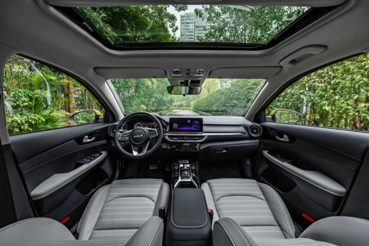 进入车内,作为中期改款车型,虽然起亚对K3的外观特别是前脸做了不小的改动,但内饰还是基本保持了老款的设计,搭载了10.25英寸炫彩仪表盘和10.25英寸智能显示屏、触控式自动空调、LCD可视换挡杆,科技氛围浓厚,配合大面积皮质材料,增加了车内的高级感和精致感。