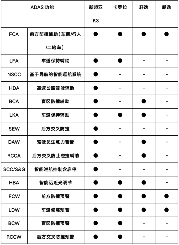 值得一提的是,资料显示,新款的起亚K3搭载L2+级智能驾驶辅助系统,对比同级别竞品功能更加丰富。其中,NSCC (基于导航的智能巡航控制)、HDA (高速公路驾驶辅助)、LFA (车道跟随辅助)、SEW (安全下车预警)几项新增ADAS功能为同级最优,在家用领域来说配置是相当高了。