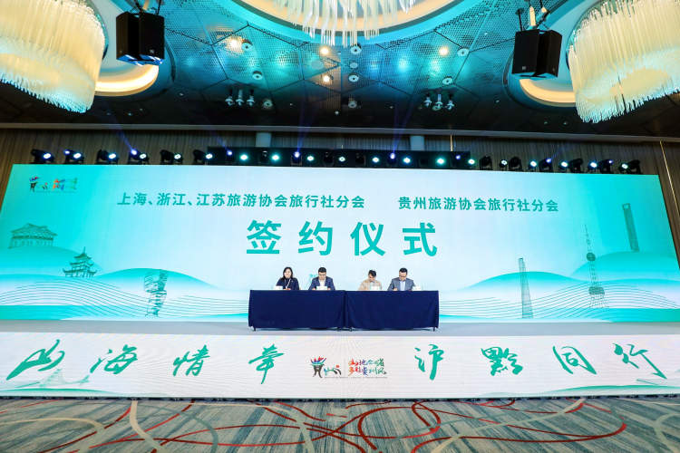 推介会上,上海中心大厦建设发展有限公司与贵州旅游投资控股(集团)有限责任公司举行合作签约仪式;上海市旅游协会旅行社分会、江苏省旅游协会旅行社分会、浙江省旅行社行业协会、贵州旅游协会旅行社分会达成合作协议并现场签约,各方将开展资源共享、客源互换,共同推动四地文化旅游高质量发展。此外,还举行了“走遍大地神州·醉美多彩贵州”——江浙沪千万游客向黔行启动仪式。