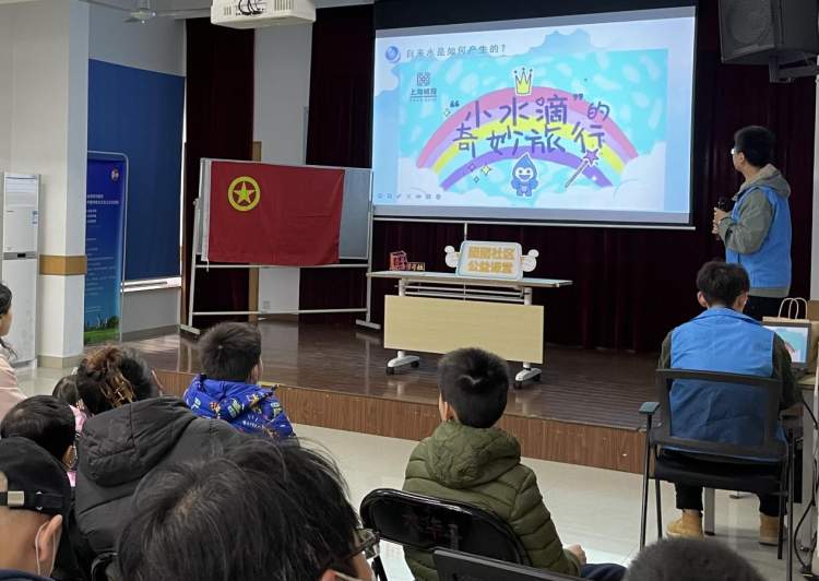 在社区活动室内,青少年们认真聆听上海城投原水有限公司青年周旭捷带来的“团团社区公益课堂”——小水滴的奇妙旅行,以青少年视角阐述水资源保护的重要性。
