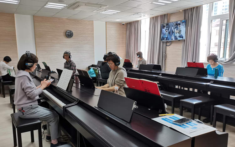 朱怀慈家里有钢琴,那是她为女儿学琴时购买的,可女儿已在国外定居,谁教自己弹琴呢?经人介绍,朱怀慈得知上海老年大学开设有钢琴课,于是就参加了钢琴班的学习。