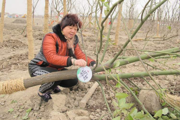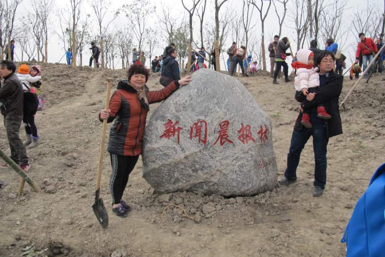 2013年,覃女士认养树木,其母亲在南大绿地参加晨报植树节活动。