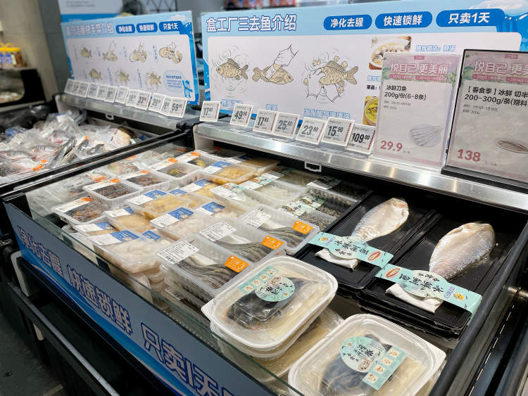 “未来的规划正在路上,比如解决鱼腥这个难题,从调水养殖、饲料、水域环境,我们和高校、院校的科研教授已经在探讨。目前,中洋在广东投了一个很大的工厂点,我们也和广东的政府端协同探讨‘去腥’这件事情。”盒马全国水产采购洛枫说,工艺加工端,比如“火锅季”推出的脆鲩、罗非,未来在中洋会把吃着蚕豆长大的鱼会更脆,薄度大概3.5毫米,这种商品会在江苏落地,这是以广东产区的商品走向江苏,面向全国。