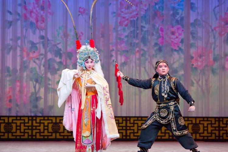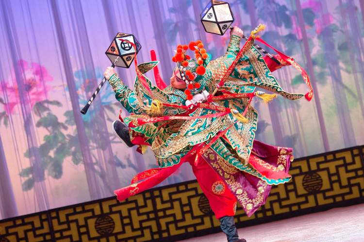 舞台上,他惊人的技巧和出色的表演频频获得观众的掌声与叫好,一招一式十分利落,将“秦怀玉”领兵救驾时的紧迫感与正义感通过眼神与动作得以精彩展现。