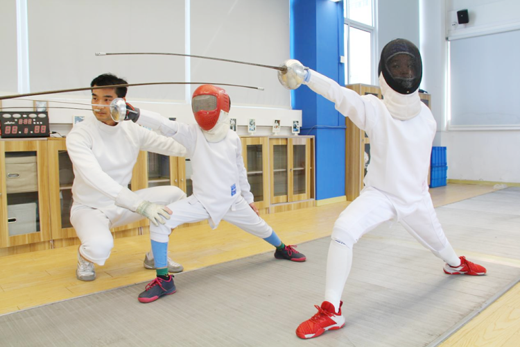 众所周知,击剑是一项古老的贵族运动,不仅需要专业器材,也依赖专门的场地。在训练器材和场地方面,学校投入了丰富的资源。拨款建造了击剑专用教室供学生参与活动,同时提供给学生合格安全的保护服、面罩、剑等运动器材。电子裁判器是击剑项目必不可少的器材,但因价格昂贵,很少有学校去购买。学校为了提供学生良好的实战环境,购买了整套金属剑道和电子裁判器,为学生日后的训练和比赛打下了坚实的物质基础。