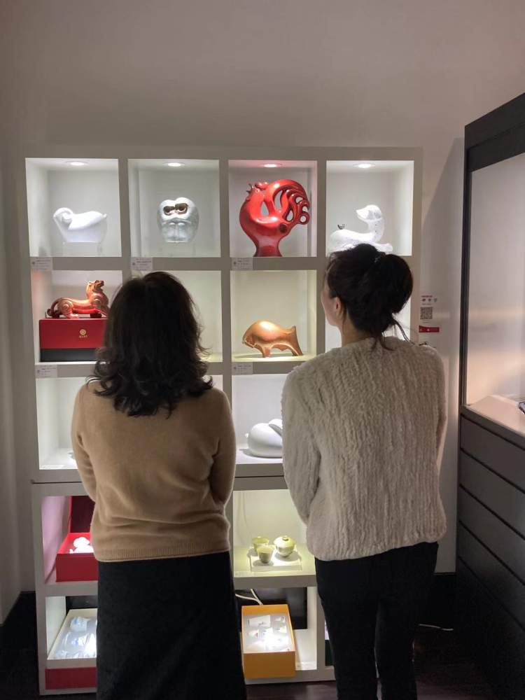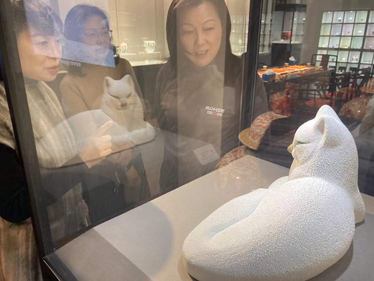 活动伊始,“健康使者”们就被璟通艺术中心收藏的陶瓷界泰斗周国桢先生创作的瓷雕《波斯猫》所吸引,熊景兰女士从瓷雕的造型、釉色、动物眼神等多方面讲述了这件作品所达到的艺术高度,并与其他同类作品进行对比,阐述了陶瓷艺术无法完全靠人力控制的“天人合一”理念。