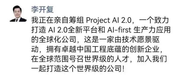 李开复宣布筹办新公司:不仅是中国版ChatGPT,全球招英才