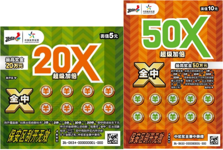一张张精美的即开票背后,是体彩顶呱刮十五年如一日的公益情怀,购彩者购买的每一张顶呱刮,都会有20%的金额用于支持体育事业和社会公益事业。本次,“X”系列“超级加倍Ⅱ”又将汇聚多少万千爱心呢?让我们一起期待!