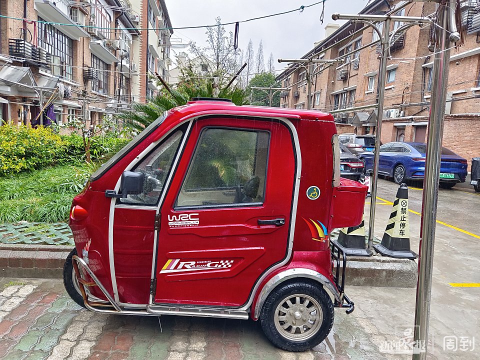 画外音:今天是周三,阿大葱油饼店休息日,中午,阿大开着他的座驾,又到店门口,眼睛直勾勾看着店铺。阿大和葱油饼,就是这种密不可分的关系吧!