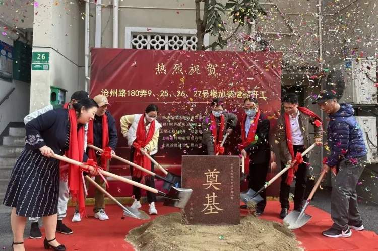 据悉,此次开工加装电梯的是沧州路180弄小区的9、25、26、27号单元楼,预计将于今年8月完工验收,为楼内居民带来舒适和便利的出行体验。