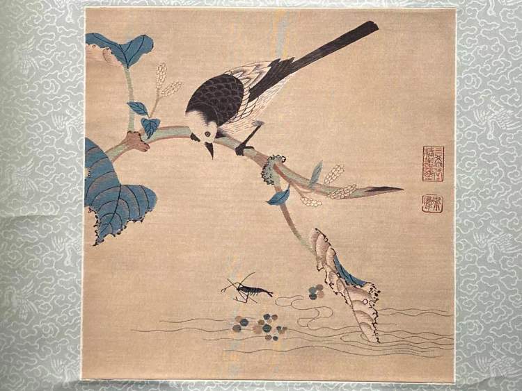 崔白是宋代花鸟画宗师级的人物,目前存世的绢本作品仅一件《双喜图》,本次所展的《杏林双燕》和《三秋图》运用布景的方式,用聊聊几笔便对应了“早春”和“深秋”,功力非凡。缂丝比纸和绢更容易保存,也成为名家名作存世的最佳载体。