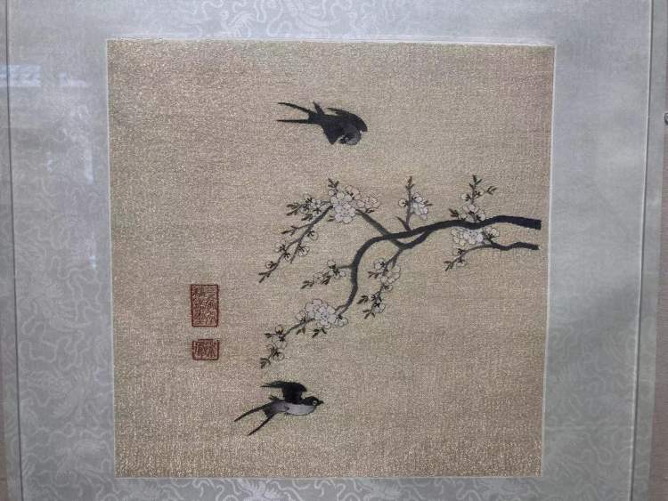缂丝作品《崔白·杏林双燕》