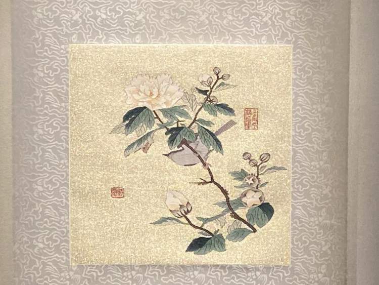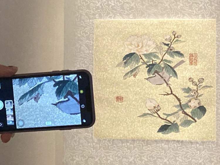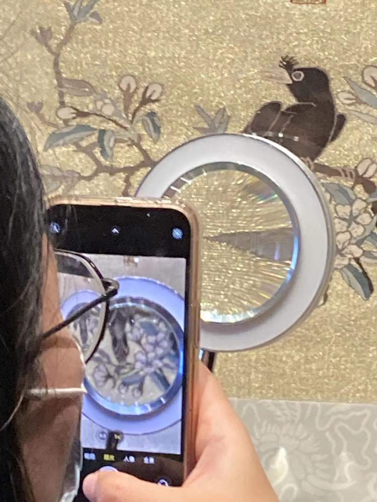 南宋大家朱克柔是中国缂丝史上的高峰人物,一件《莲塘乳鸭图》成为了上博的镇馆之宝,为弥补当时不能拍照的遗憾,本次展览上展出了临摹的朱克柔另两件存世缂丝花鸟作品,尺幅虽小,但画面极精,同时展方还体贴提供放大镜供全程观展。