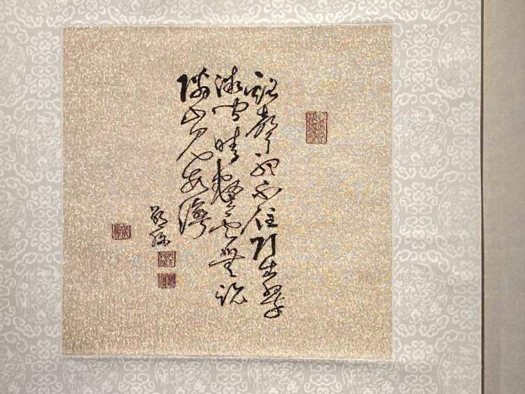 现场展出一组三件的当代缂丝作品《金山银山-过去·现在·未来》,便运用了多种贵金属丝线,在灯光照耀下闪闪发光,尽显华贵。