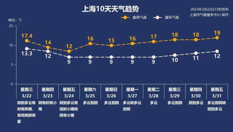 届时气温总体呈现平稳上升的趋势,最低气温在9℃以上。