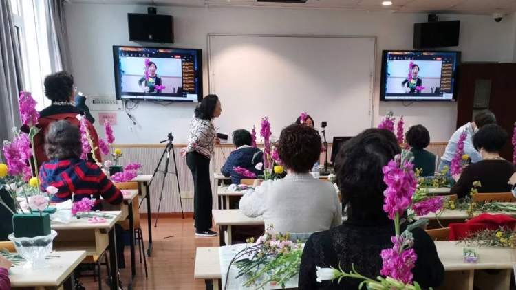 以记者所观摩的艺术插花课为例,授课对象除了教室里的20多位学员外,还有11位学员在线听课学习。