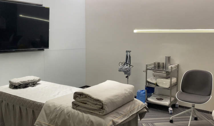 如果不想运动,只想按摩舒展下筋骨,同层还有一间理疗室,主要是针对一些常见的颈椎痛、肩周炎、腰椎痛等进行理疗、艾灸及按摩等。