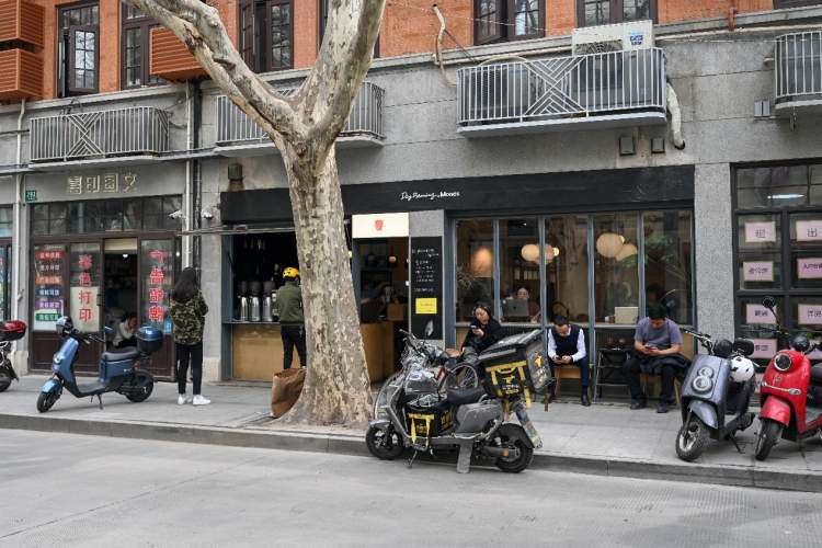 上海已至三月,不同年龄段的顾客塞满了这家社区咖啡馆,店员忙着端上特色的饮品点心。