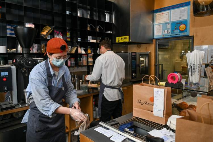 ■店员为线上点单的顾客准备咖啡。朱伟/摄
