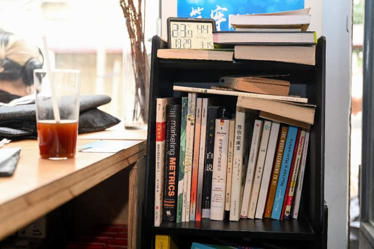 ■周边社区居民为店内的“共享书架”提供了不少书籍。朱伟/摄