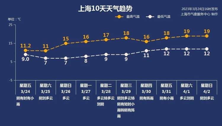 连续阴雨,今天上海的气温可是降至了本周最低,徐家汇站今天白天的最高气温也只有11.2℃。好消息是,这个双休日,阳光有望上线,气温也在慢慢酝酿着向上爬升。