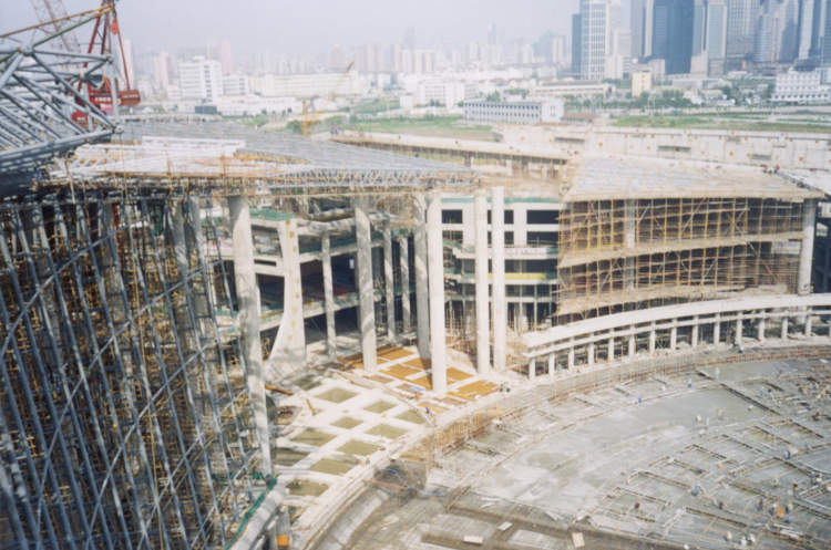 上海科技馆打下第一根桩。彼时,这里还是一片荒凉农田。