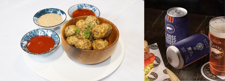 春季特有的神“鲜”野菜,红香椿苗香味浓郁、口感脆嫩。倘若搭配豆腐制成丸子,蘸上泰式甜辣、焙煎芝麻、番茄沙司三种风味酱汁,咬一口便都是满嘴的春天滋味,再搭配上奥乐齐鹅岛野鹅轻盈印度淡色艾尔啤酒,其浓郁麦芽风味与顺滑口感,让各种香味在唇齿间徘徊。